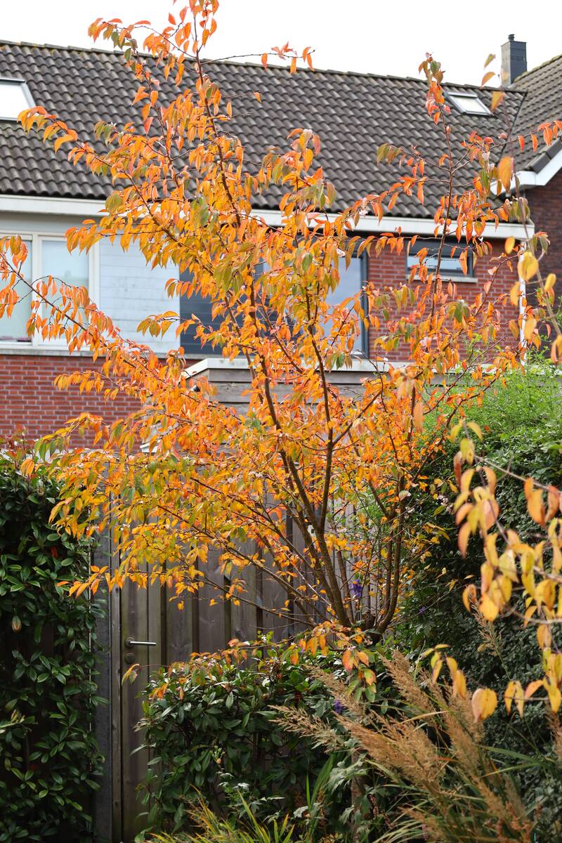 Naast het grote terras is er ook een klein terras waar je ’s zomers ’s avonds nog in de zon kunt zitten. De vijver met prachtige vijverplanten zorgt voor allerlei leven in de tuin. Heel veel vliegende insecten zoals libelles en waterjuffers, salamandertjes, kikkers en padden komen graag in deze tuin. De beplanting is zo gekozen dat deze het hele jaar door interessant is. Een aantal planten, zoals de sierkers, bloeit zelfs in de winter. De lichtgekleurde bestrating, vijver en beplanting zorgen ervoor dat deze tuin op het zuiden ook in de zomer koel blijft.