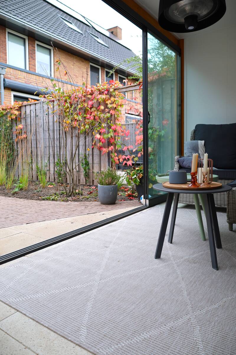 In de knusse overkapping kun je je heerlijk terugtrekken en tot rust komen. Ondertussen kun je alles wat voorbij fladdert aan vlinders, bijen en vogels in de gaten houden. De warme houttinten gecombineerd met lichte waaltjes geven een zachte, open sfeer. Het bijzondere is dat de tuin juist ruimer en levendiger oogt, hoewel hij kleiner is geworden door de overkapping en schuur.